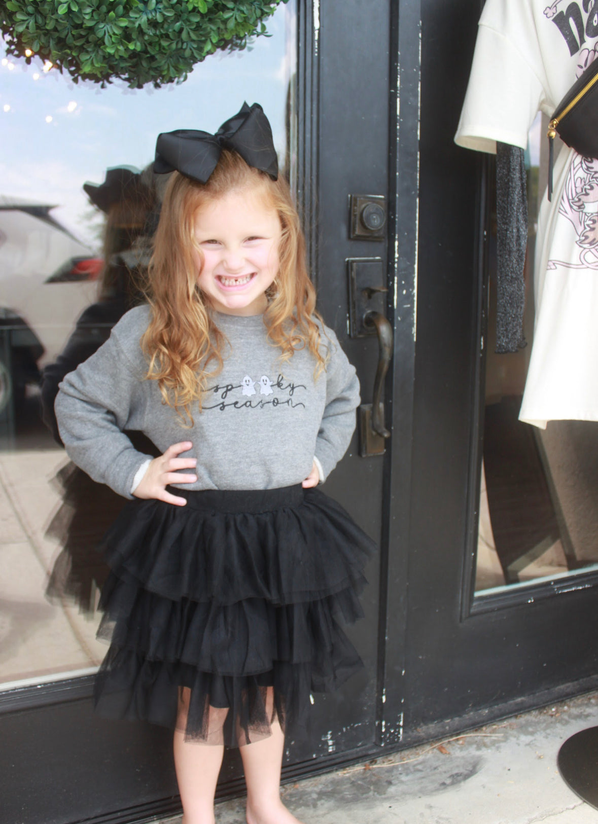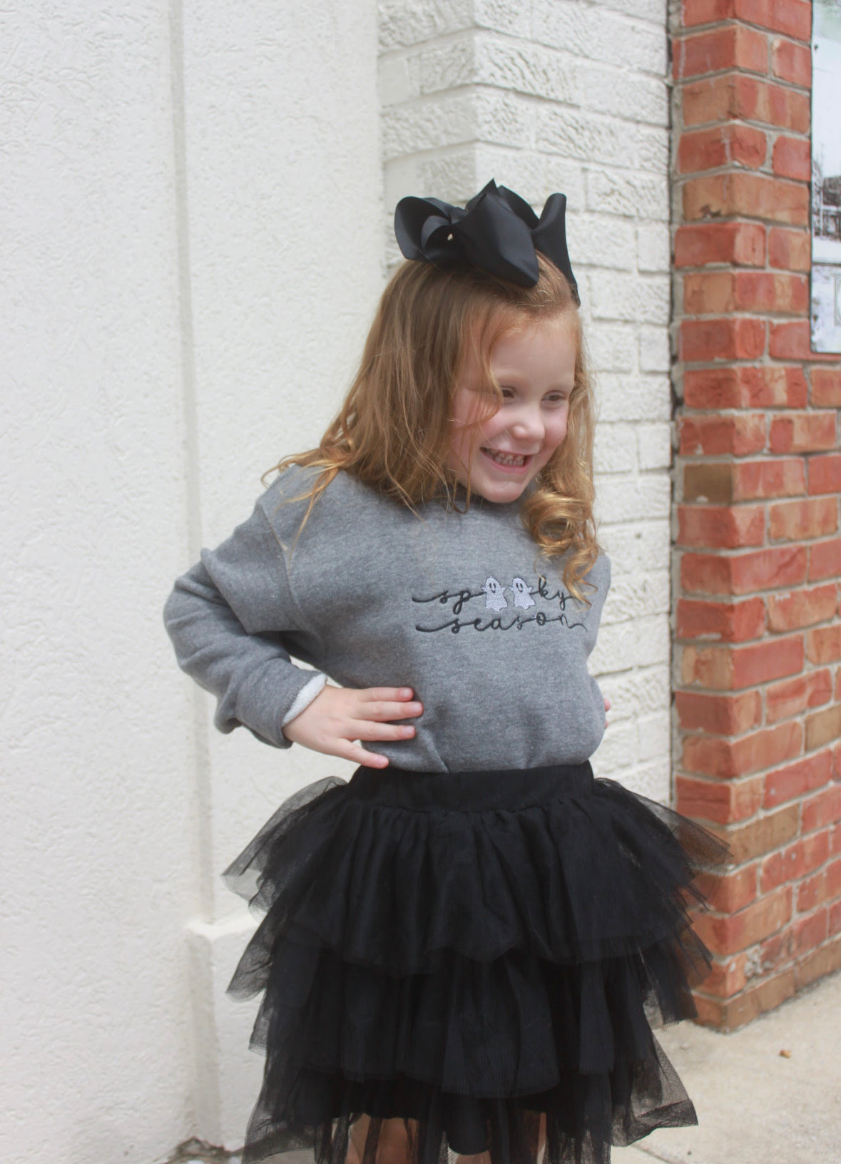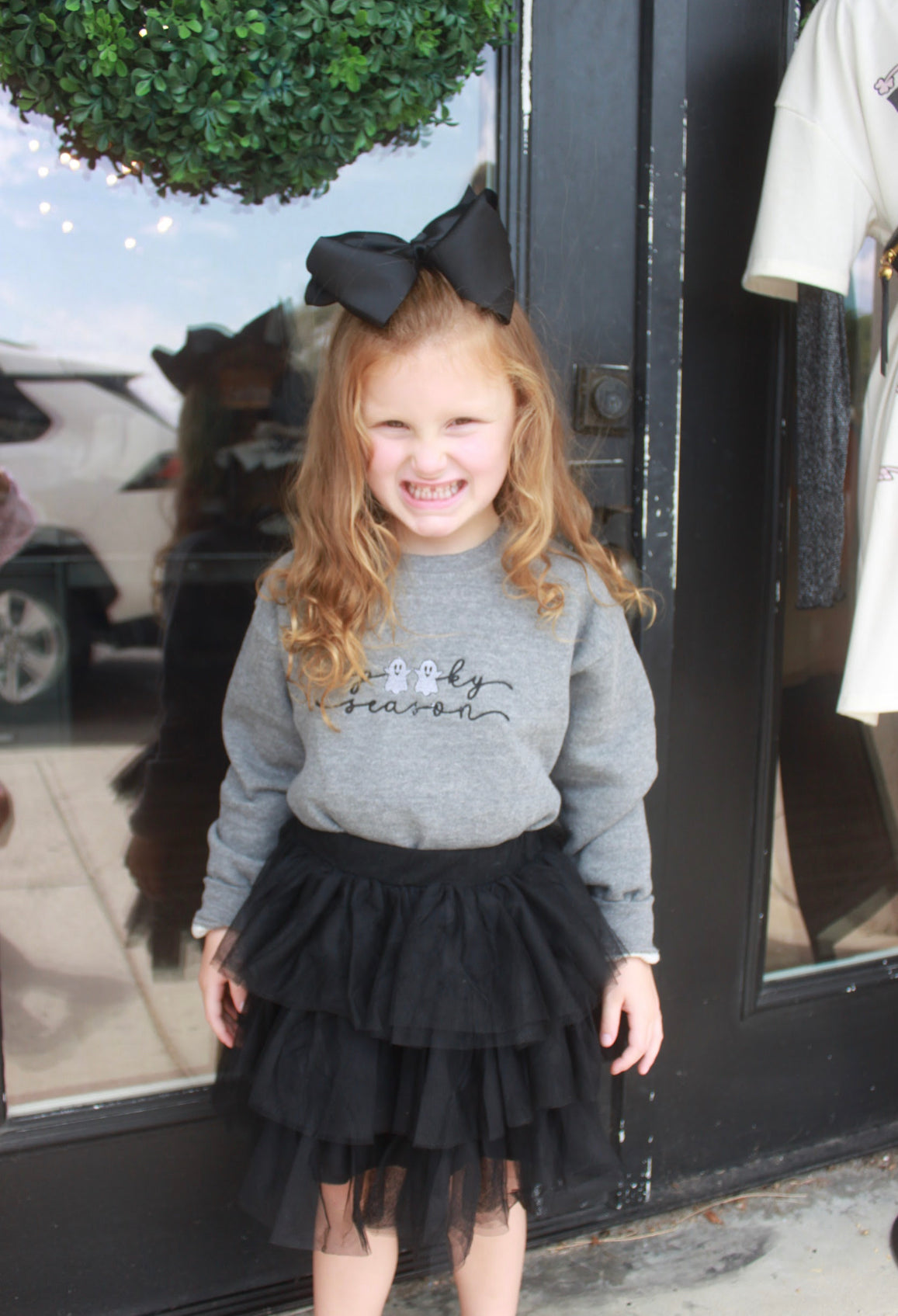 Get ready for all things Halloween with our “Spooky Season” Ghost Embroidered Crewneck! This cozy sweatshirt features cute embroidered ghosts alongside festive lettering, making it the perfect mix of spooky and sweet. Crafted from soft, premium fabric with a relaxed fit, it’s ideal for pumpkin patch trips, haunted adventures, or cozy nights with Halloween treats. A fun, festive staple for celebrating the season in style!
