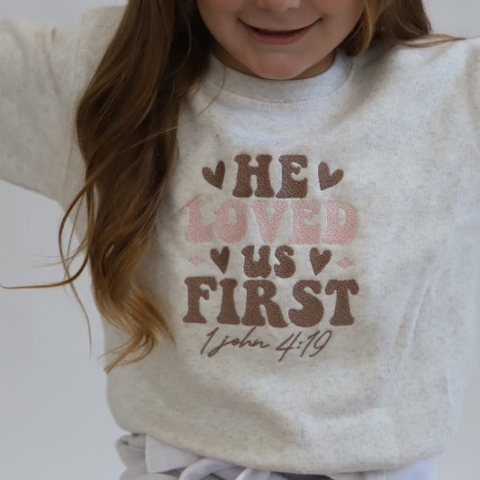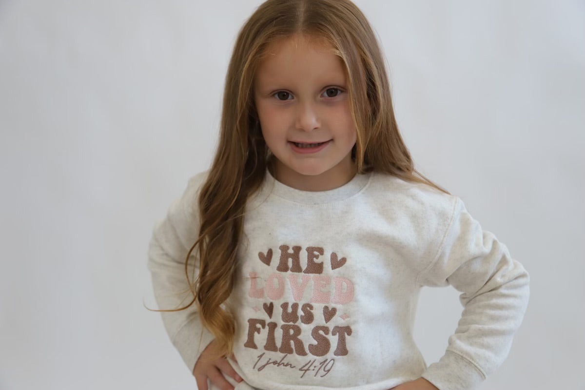 Embroidered 1 John 4:19 Crewneck