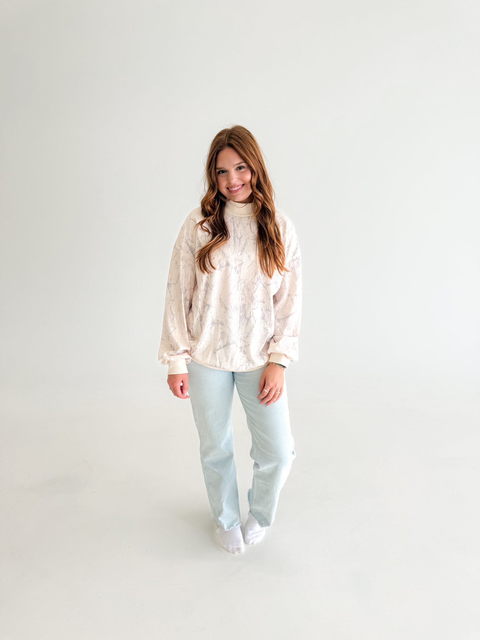 Wrap yourself in cozy comfort with this oversized camo mock neck sweatshirt—your new fall essential. Featuring a trendy tan camo print and irresistibly soft fabric, it's the perfect piece for lazy days, weekend hangouts, or whenever you need that snug, effortless vibe. The relaxed fit means maximum comfort without sacrificing style. Layer it, lounge in it, love it.