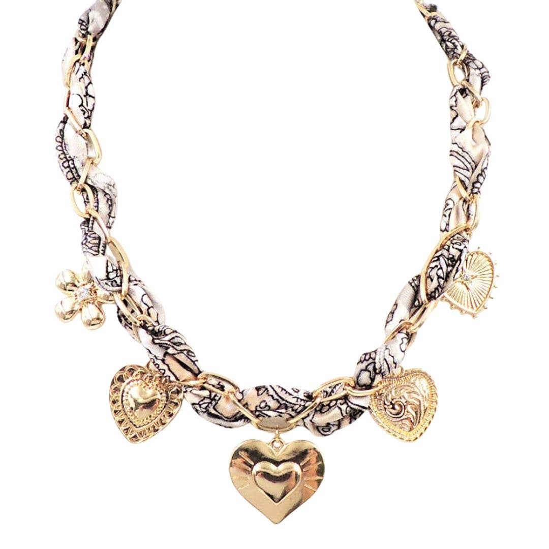 • Load image into Gallery viewer, Tan&Black Gold Heart Scarf Necklace