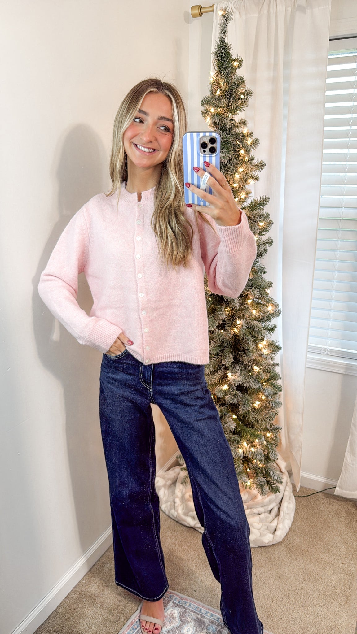 In the perfect shade of pink, it brings a soft pop of color to any outfit — whether you're lounging at home, heading to brunch, or layering up for a chilly evening stroll. With a relaxed fit, drop shoulders, and ribbed cuffs, the Cloud 9 Cardi is made for floating through your day in total comfort.