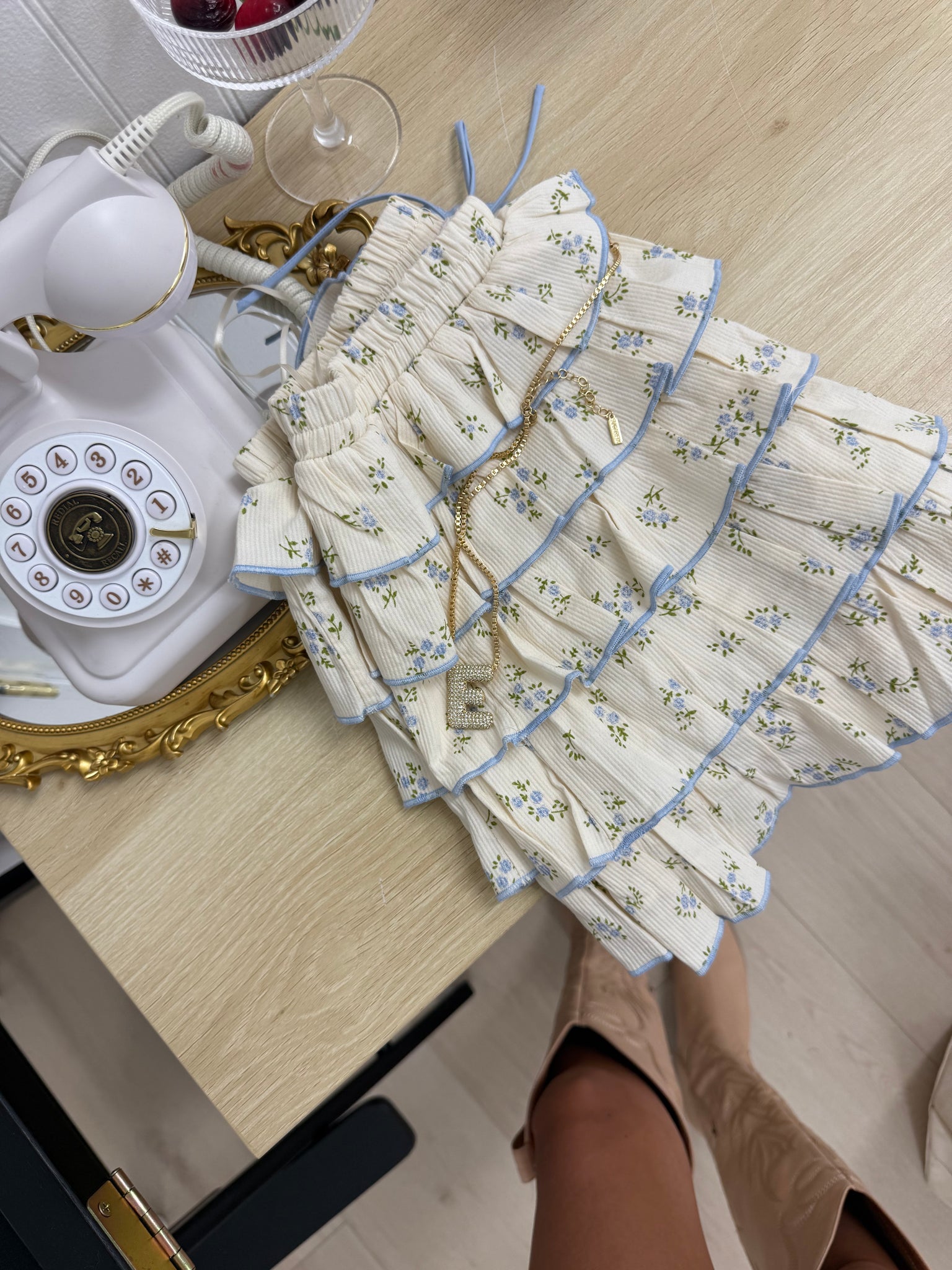Add a flirty touch to your wardrobe with this tiered ruffled mini skort, featuring a charming floral print that's perfect for sunny days. Designed with the comfort of shorts and the style of a skirt, this piece is both cute and functional. Ideal for casual outings, brunch dates, or beach strolls-just pair it with your favorite top and you're good to go!